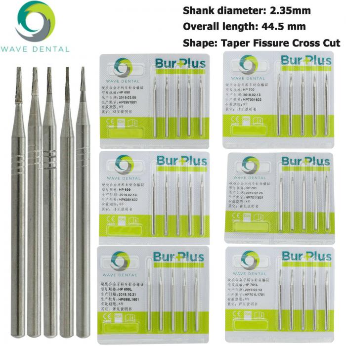 10 Pezzi HP 698 699 699L 700 701 701L frese a taglio incrociato per fessure coniche in metallo duro dentale