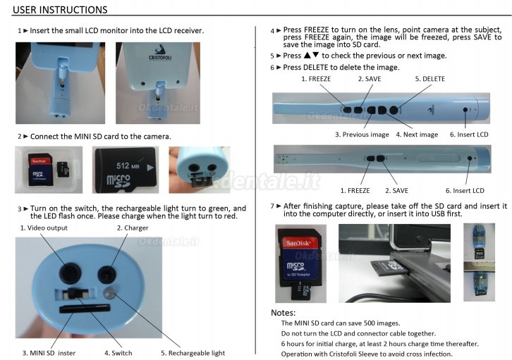 1. Telecamera intraorale orale ad alta risoluzione da 1/4 CMOS.