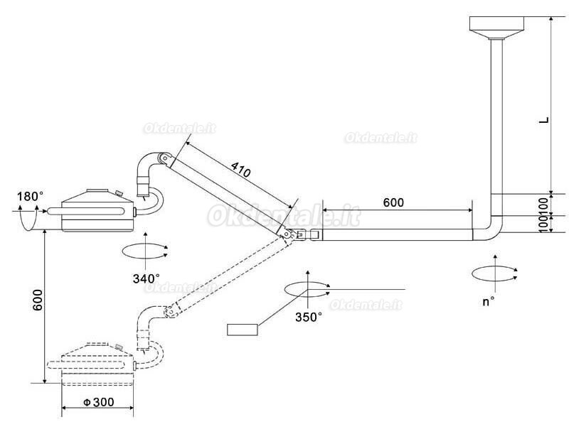 * Installato nella parte superiore della stanza, con un raggio di movimento di 360 gradi.