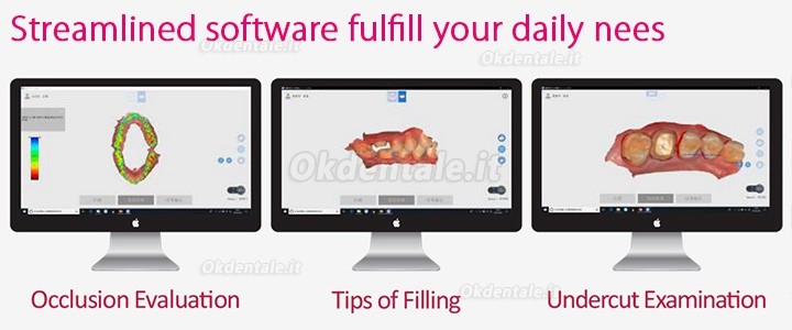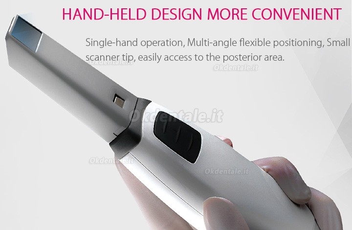 - Comodo design portatile che richiede solo il funzionamento con una sola mano, consentendo il cambio flessibile multi-angolo dell'impronta intraorale. Scansiona facilmente i denti posteriori