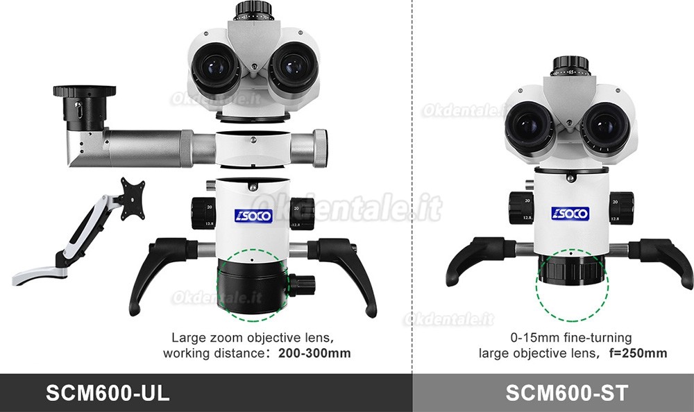 L'intervallo di zoom continuo è 200-300 mm, alto, L'intervallo di zoom fino a 100 mm copre quasi tutti. La distanza di lavoro della terapia orale richiede solo di regolare la manopola dello zoom. È facile mettere a fuoco ovunque senza doverlo fare. Cambia la posizione dei microscopi endodontici SOCO SM600 o del tuo posto.