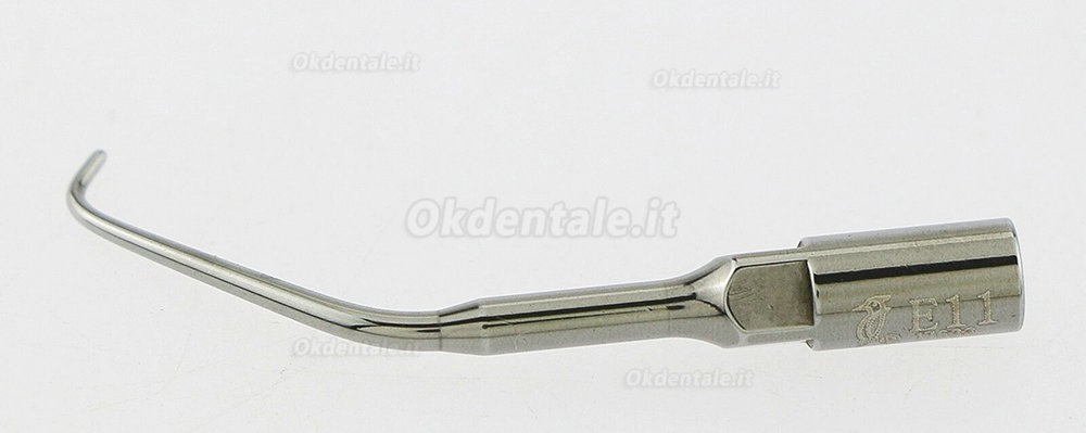1.E10: Inserto endodontico morbido, utilizzato nel trattamento canalare (canali radicali di preparazione retrograda) per la lucidatura dei canali radicolari; la lunghezza della parte liscia è di 4,5 mm.